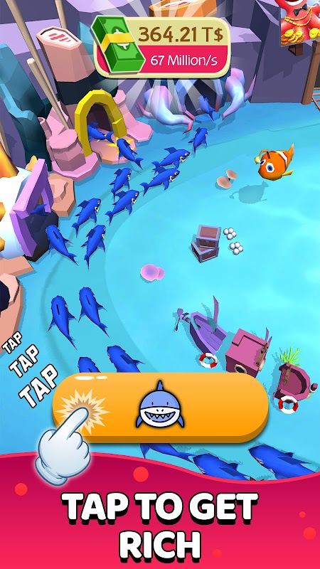 Become the master of your underwater kingdom as you tap, tap, and tap to produce more fishes in this engaging shark game.