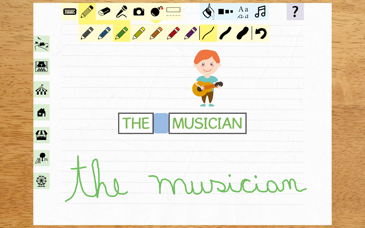 illustrated cards. With the letter board, users can write graphemes, phrases, or