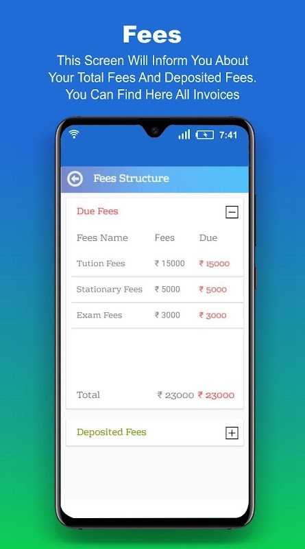 We value your precious time and understand that it is not easy for you to visit the school for every single issue so we request you to take full advantage of this Android Application, details about the Application are as below: