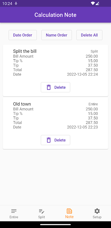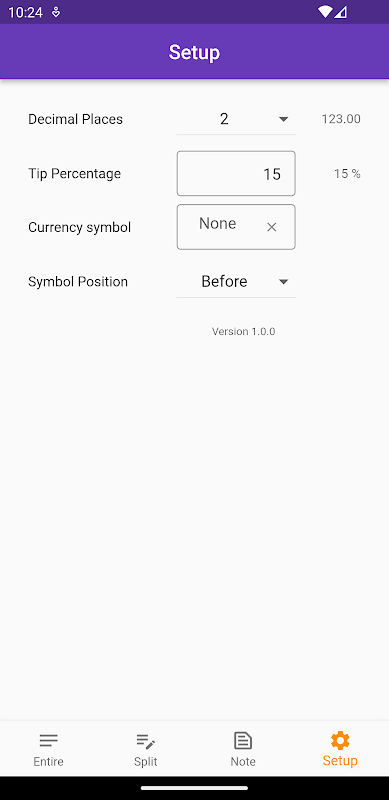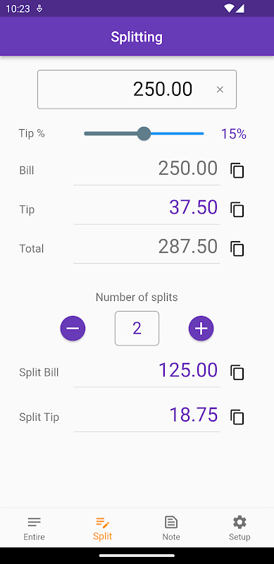This app calculates and displays the tip from the bill by the percentage set by the user. It can also be calculated when paying in splits among several people.