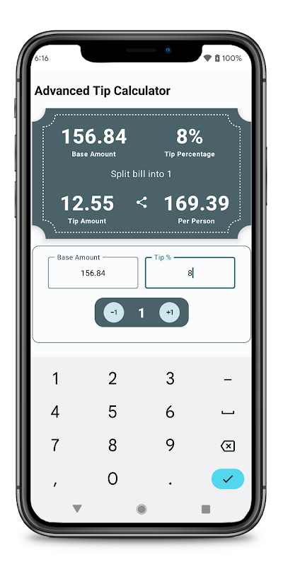 Calculating tips and dividing the amount among the group of people can be time-consuming. Now with this app, you can