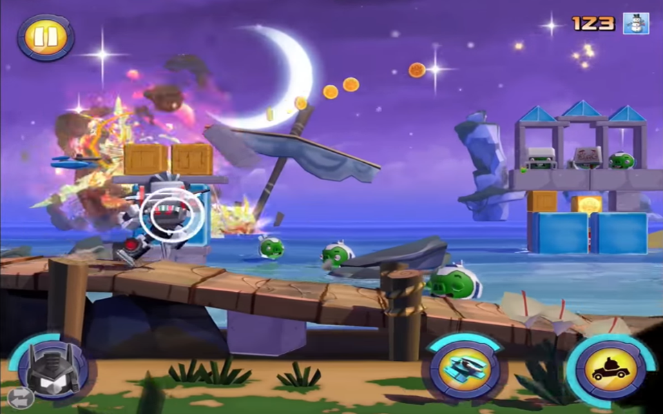 Angry Birds Transformers is the newest game in the Angry Birds series and if it werent for Epic, it would be the most surprising and most unique. This one does away with the slingshotting action of the core series, instead turning it into a run-and-gun shooter where your birds, costumed as Transformers, shoot at pigs that are perched on the familiar blocks. Like in the core series, your goal is to get rid of the pigs by collapsing the blocks in the most unique ways possible.