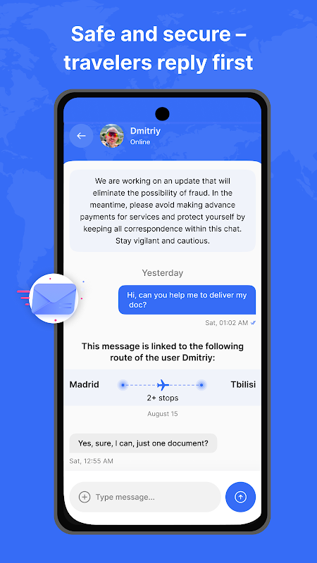• Fraudsters cannot contact those in need first. Users choose reliable travelers and connect with them.