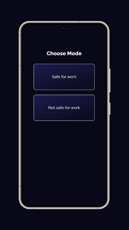 There's two playing modes: "Safe for work," in case you want to play a drinking game at work, without inappropriate themes, and "Not safe for work."