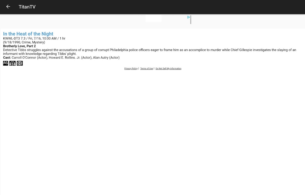 The TitanTV app on Android is a free mobile program and TV listings guide.