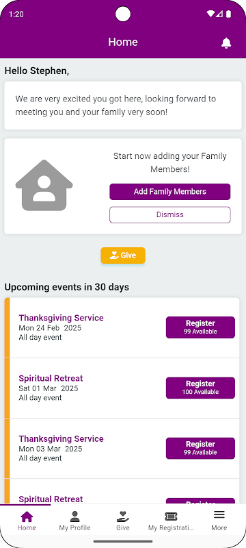 - **View Events** – Stay updated on upcoming services, gatherings, and special events.