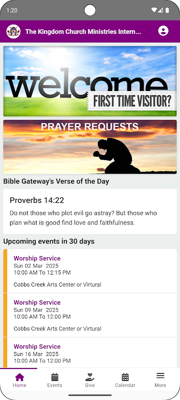 Welcome to The Kingdom Church Ministries International Mobile App! Stay connected with our community and enhance your worship experience with powerful features designed to keep you informed and engaged.