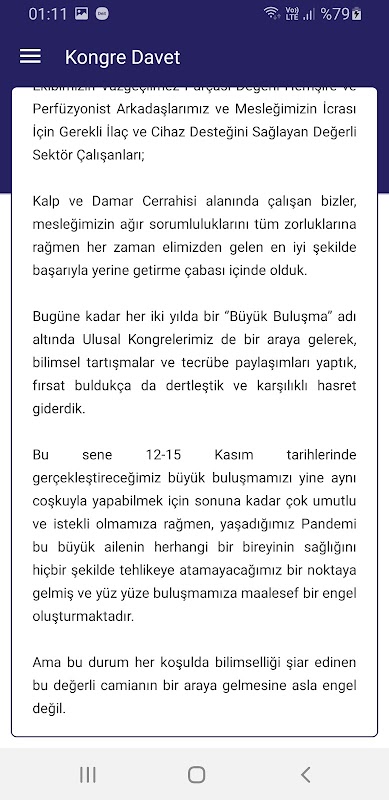 TKDCD 16. Kongresi Resmi Android Uygulaması ile kongre öncesinde, sırasında ve sonrasında yayınlanan içeriklere, genel bilgilere, bilimsel program, konuşmacı bilgilerine ve detaylarına ulaşabilir, sunum ve bildiri bölümlerinden bildirilerin kısa detaylarını inceleyebilir izin verilen sunumları pdf olarak görebilirsiniz. Anlık bildirimler, duyurular ve favori bölümü ile oturumlardan, öğle ikramları gibi sosyal etkinliklerden haberdar olabilir, anket sistemimiz ile soruları cevaplayabilir, medya bölümümüzden kongre gazetesine, fotograflarını, videolarını takip edebilirsiniz.