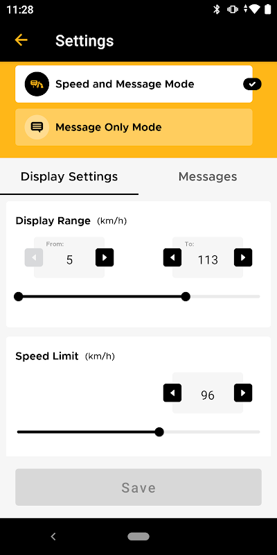 Current speed limit, tolerated speed limit, and current message settings are displayed in this mode. You