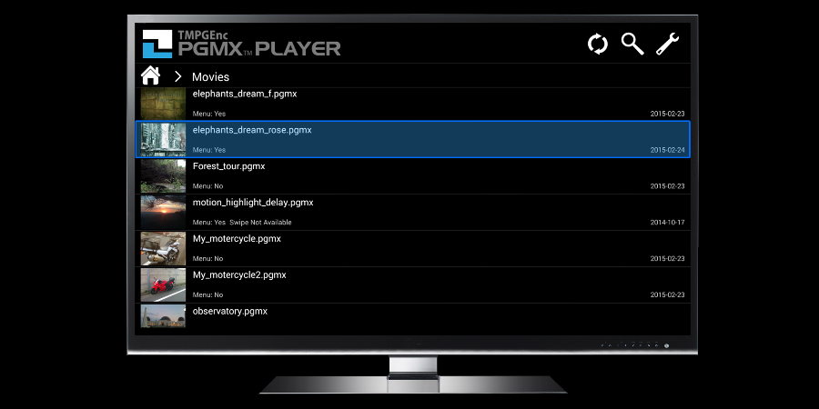 PGMX files can also utilize a navigational menu system that can link to multiple videos within the file. Since both the menu and videos are combined into one file, there is no complex folder structure like those found in the DVD-Video and Blu-ray formats.