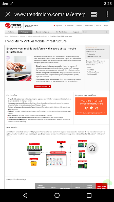 - Your data is secure so if you lose your mobile device, your corporate data would still be under protection and available from the Virtual Mobile Infrastructure server.