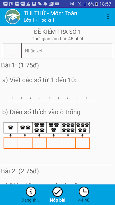 About Toán, TV Lớp 1 Ôn Tập, Đề Thi