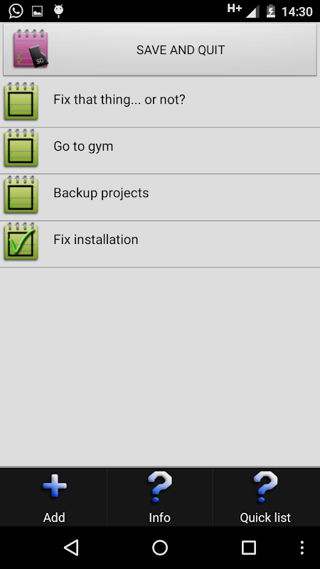Use the MENU to add elements to your list appears with Menu Button (old Android) or Three-Dot-Icon in the bottom.