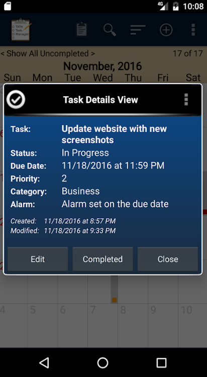 ToDo Task Manager -Pro is a powerful to-do task management tool with a simple and completely customizable user interface. It allows you to quickly and easily track and organize all of your to-do tasks.