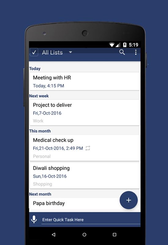 • Easily add, organize and schedule your to-dos from your phone
