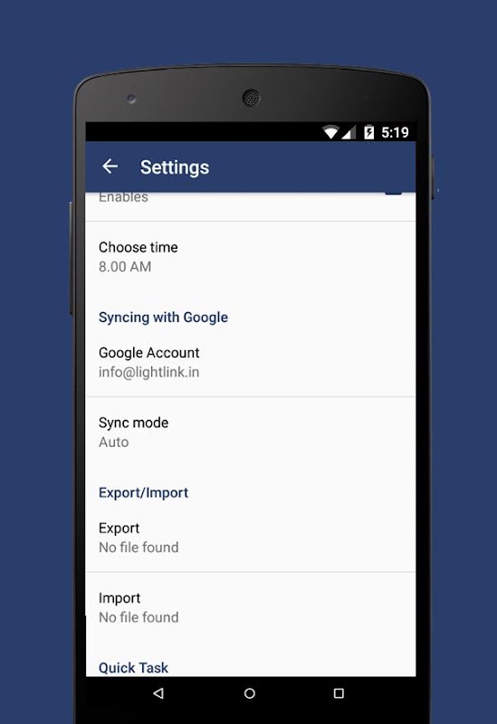 From planning an awesome vacation to organizing a big project.To-do list instantly syncs between your phone and Google Drive, so you can access your to-dos from anywhere.It also allow you to backup remotly in SD card.