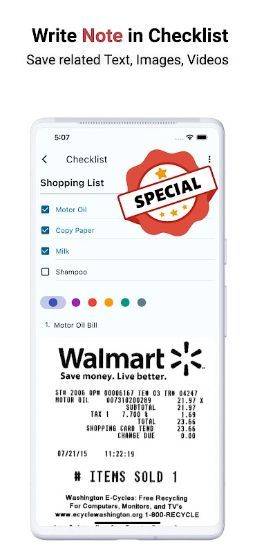 More outstanding than other applications, after completing a checklist, you can store related photos or videos.