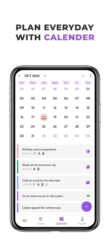 Add them by typing or voice input. With Smart Date Parsing, the date info you enter will be automatically set as the due date for task reminders with a notification. Stay as productive as you can with this time manager and to-do checklist!