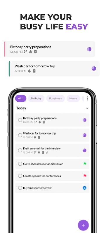 Instead of keeping all things in mind, put them into the "To Do List" app. It will remember everything for you and provide instant task to-do list reminders, for you to get. Set multiple notifications for important tasks and notes to never miss any deadline!