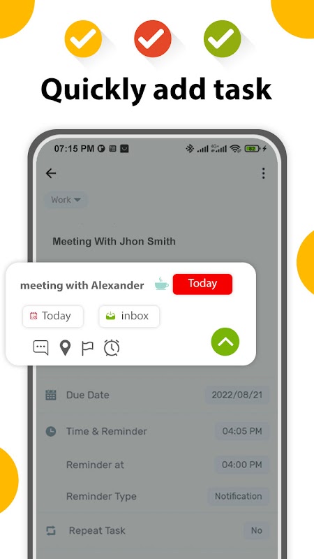 Use reminders to ensure that tasks are completed on time, and with smart alerts, you may snooze or mark a job as done without having to open the app.