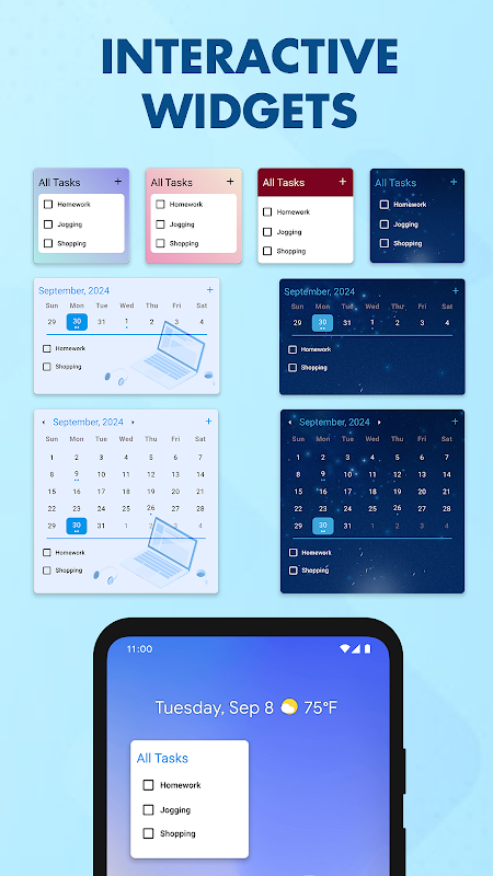 Set up daily To Do List Widgets to let you check today's To Do List and schedule planner quickly.