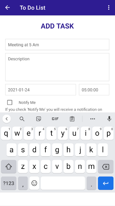 * Adding To Do tasks (With notification/reminder option).
