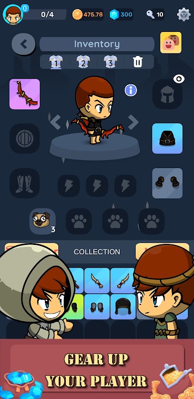 💍 Gear Upgrades & Evolution: Loot gems and coins from fallen enemies and upgrade your gear to new heights. Craft and evolve equipment beyond its limits, unlocking legendary stats and cool new looks for your hero. Every piece of loot can become a game-changer with enough upgrades (yes, that means endless progression!).