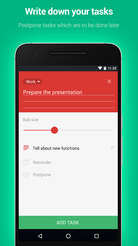 You simply add bubbles with task names to the visual planner and then watch them go down the funnel when you mark tasks as done. It is very convenient to keep tasks that need to be done soon in the funnel, so you can always see how much there is to do. When you see the funnel of task manager is packed full and understand that something has to be done later, you can put tasks off – they will be removed from the funnel and you can pick the date when they need to show up in the funnel again. There is also a classic to-do list view for current, pending, and completed tasks.
