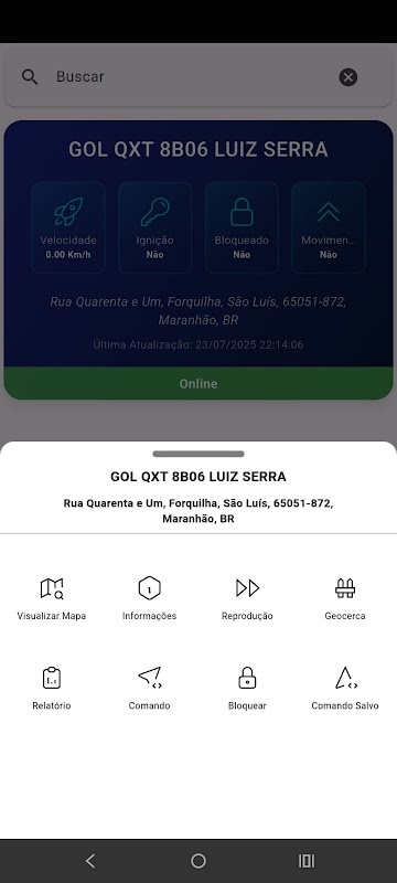 - Menus for: View Map, Information, Playback, Geofence, Report, Command, Lock, and Saved Command;