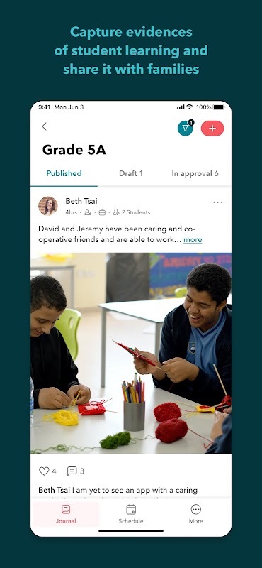 * Capture evidences of student learning through photos, videos, audio notes and more