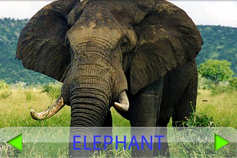 Tap on an image and you get the sound of the animal. Tap on the text of the label and you get a professionally recorded voiceover in ENGLISH of the name of the animal.
