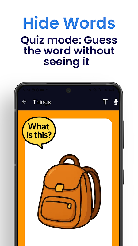 Quiz Mode – See only the picture and say the word in a fun memory game