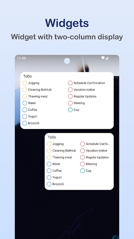 Turn repetitive ToDo entries into a breeze with our predictive word feature, allowing you to add frequent ToDo's in no time. Manage your ToDo's smarter, faster, and with unparalleled convenience, right from your home screen.