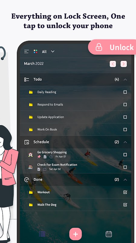 Todo & Schedule on Lock Screen that helps you manage the tasks you need to do corresponding to different days.