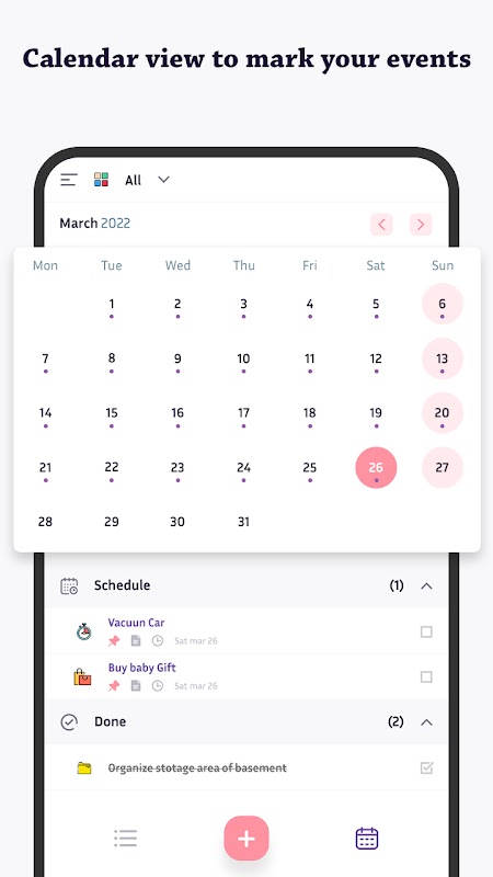 You can create to-dos and schedules in the form of calendars and lists, and manage them by folder.
