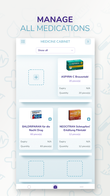 • Modern solution for managing medicine to ensure they are taken at the right time and to monitor the progress of your treatment in the medicine list.