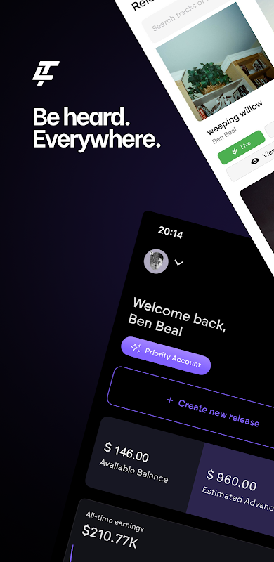 Distribute your music straight from your phone and reach audiences worldwide!