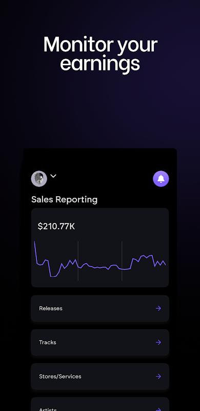 Track your success with real-time analytics - monitor streams, views, and sales data in one place.