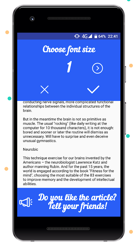 - the ability to hide the top panel of your smartphone and all the distractions, leaving only the article