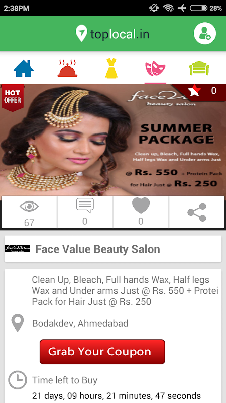 Toplocal is an application to search for local retail businesses in the categories - food & restaurant, fashion, beauty & health, living and other local business. You can explore local market with required details such as address, contact no., photos and map location and share your valuable feedback for local business. Facility of directly calling, mailing and texting has been imbibed to ease your journey.