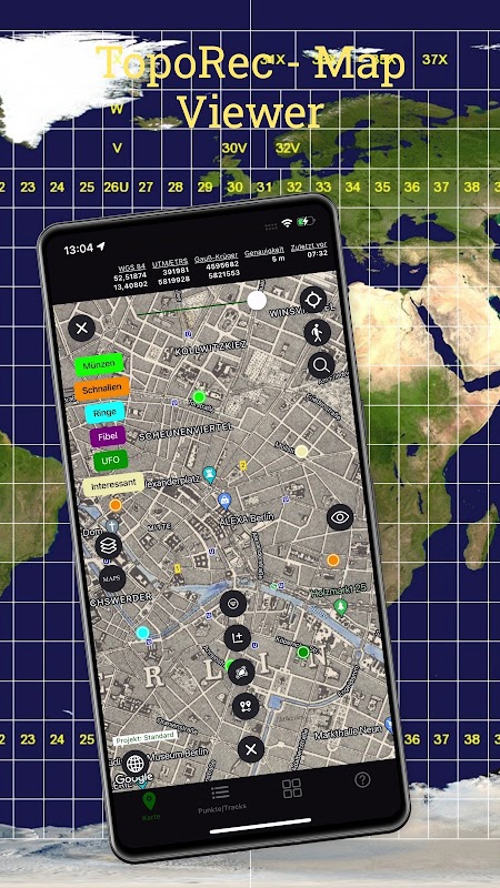 Explore the world through maps! With TopoRec, you can access historical and current map data from around the globe. Discover locations, record positions, edit areas, track routes, and import or export your data – all in one app.