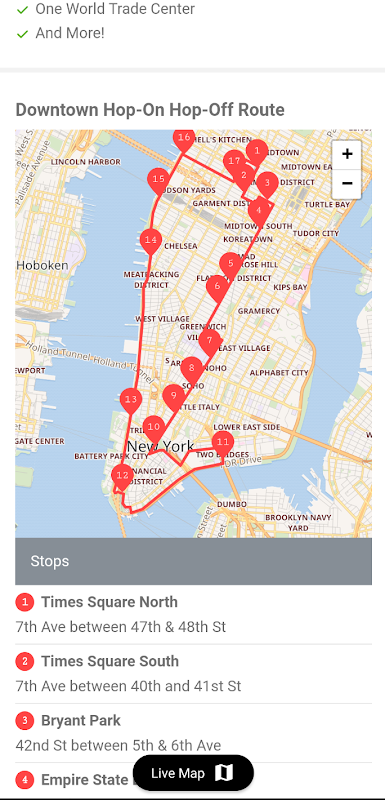 Our new app lets you redeem your tickets and use them to access our large fleet of double decker buses which stop at major NYC attractions, making it convenient for customers to explore the city at their pace.