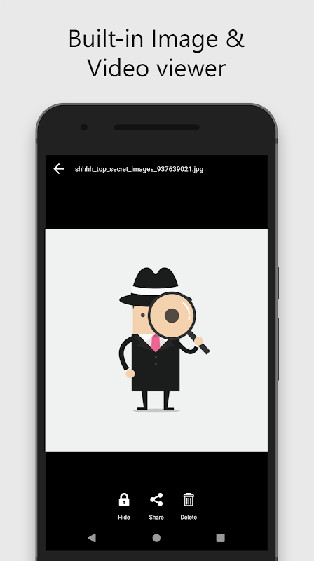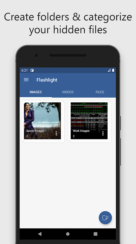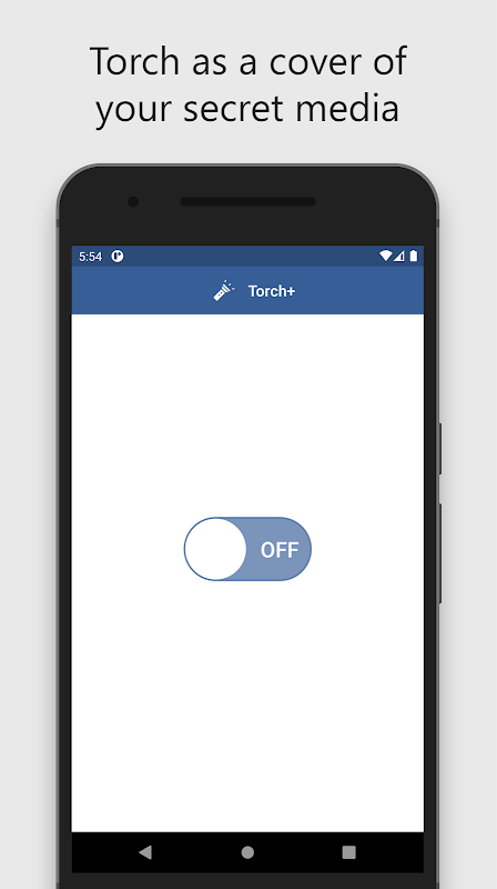 This app is disguised as Flashlight app, which can be used to turn on/off LED light. But if you long press the torch title, the real vault will open and you can hide the photos, videos and all types of files you want.