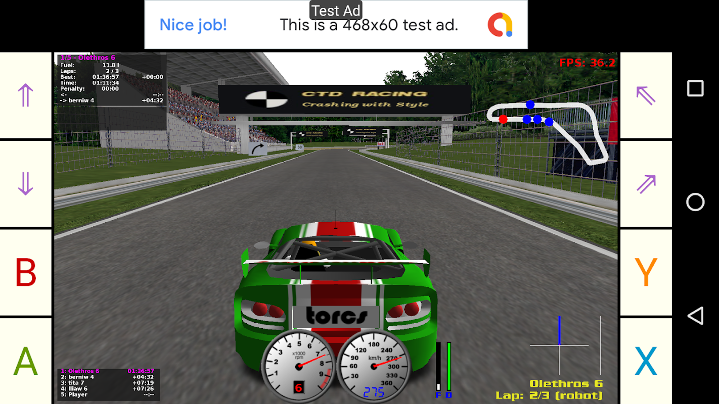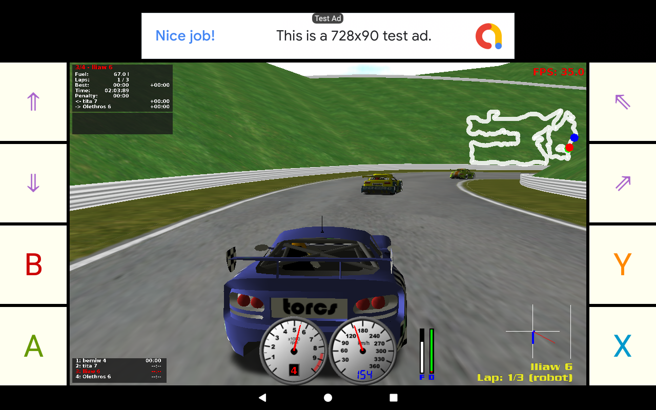 The famous TORCS open racing car simulator game for Android. Please see https://sourceforge.net/projects/torcs for more information.