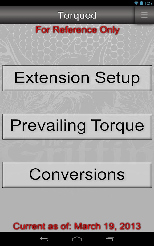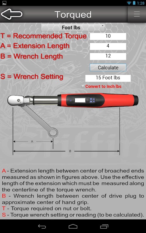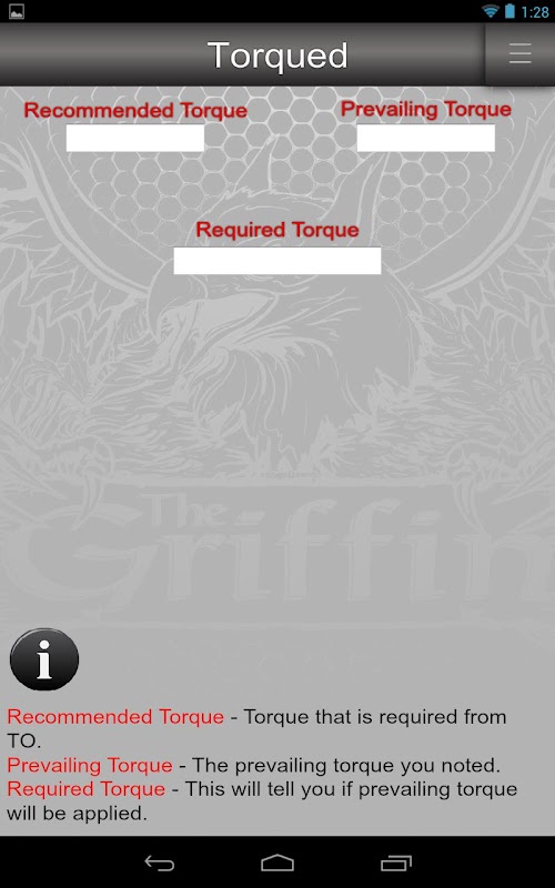 Torqued provides maintainers with essential tools related to using torque wrenches right on their own devices!. Torqued has a calculator for finding the correct torque when using extensions, a calculator for unit conversions, and a prevailing torque calculator. Don't know what prevailing torque is? Hit the "learn" button to find out more. Information and calculations are based on 33B14-3-1-101, and are for reference use only. No liability shall arise against Google Inc. or USAF if used by non-USAF personnel.