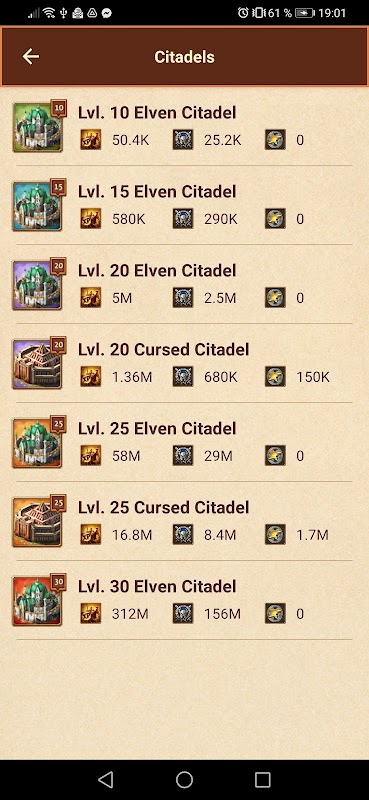 3. A calculator that allows you to calculate how many catapults are needed to destroy a citadel.