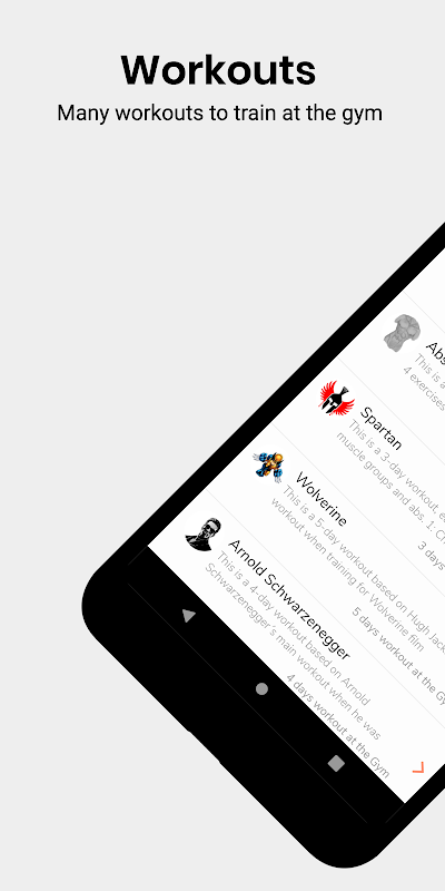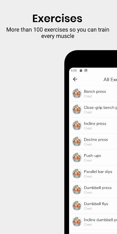 More than 100 different exercises to do at the gym with explanation of the exercise, info about involved muscles, images and an explanation video