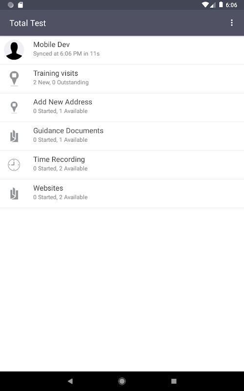 The Total Test application is a new offering. The Total Test application should be used to assist training Total field workers on the Total application. The Total Test application helps Total workers get familiar with the Total application and process.