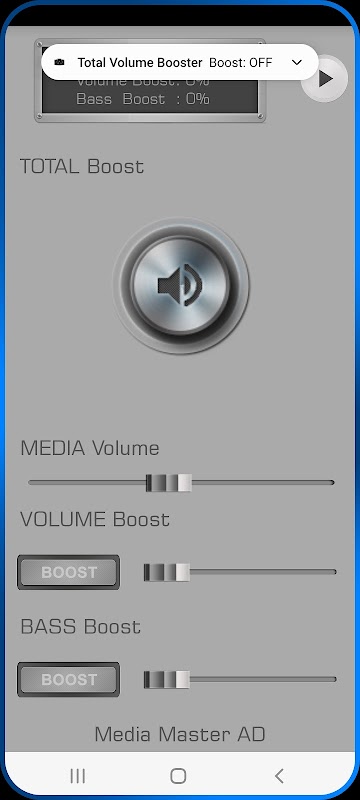Total Volume Booster is a simple and easy to use application that allows you to increase the volume of your phone up to 80% above what is allowed by the manufacturer. This effect is achieved by using a special algorithm for setting the built-in equalizer in Android devices and the hidden function of Android - Loudness Enhancer! For an even more powerful effect to Volume Boost, we have added Bass Boost, which in combination directly blow up your speakers!