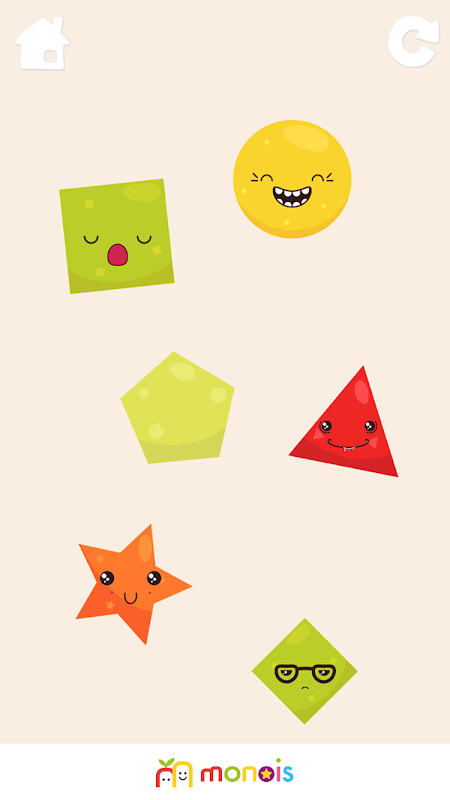 Jiggly shapes like circles, triangles, squares, and stars fall and bounce.